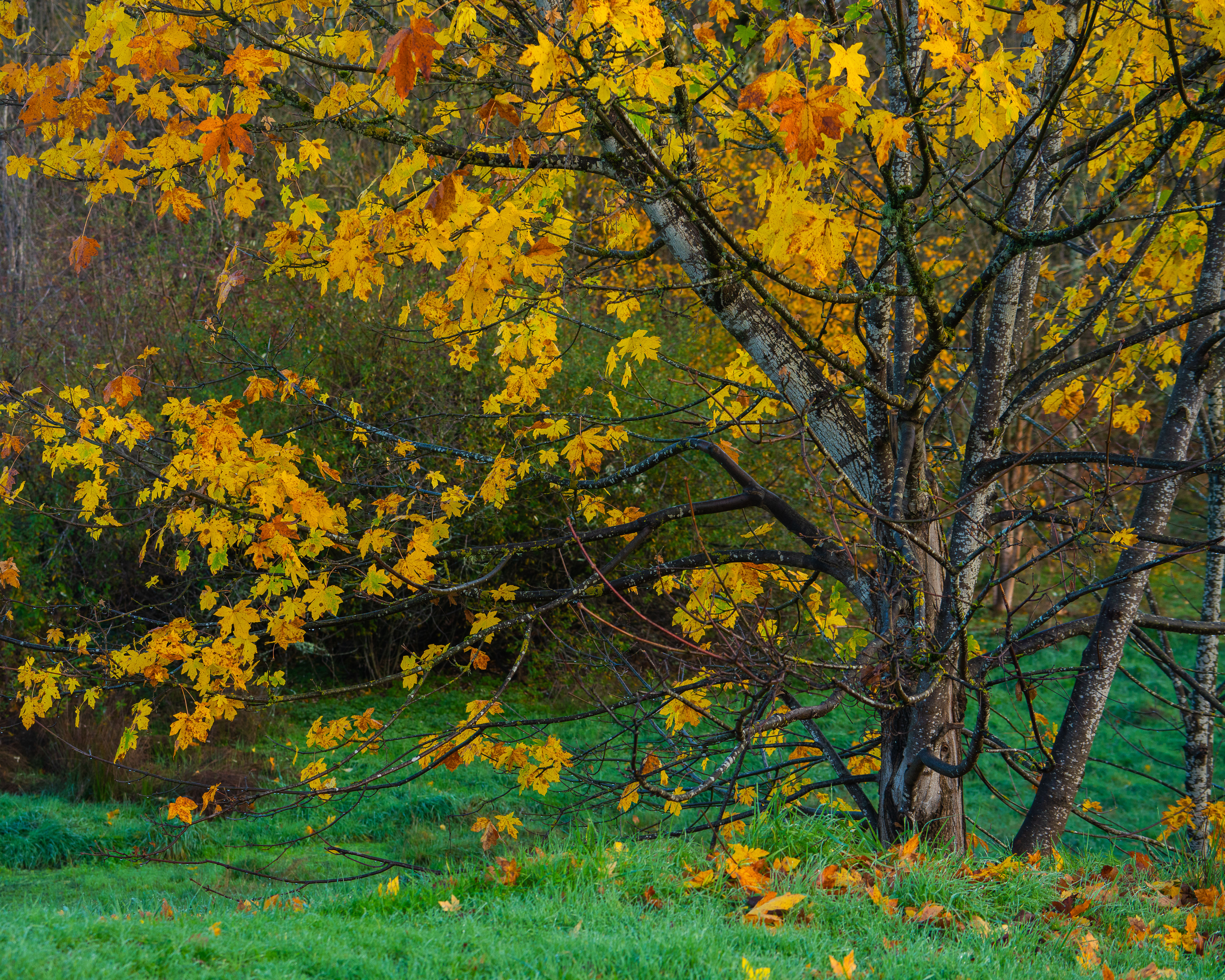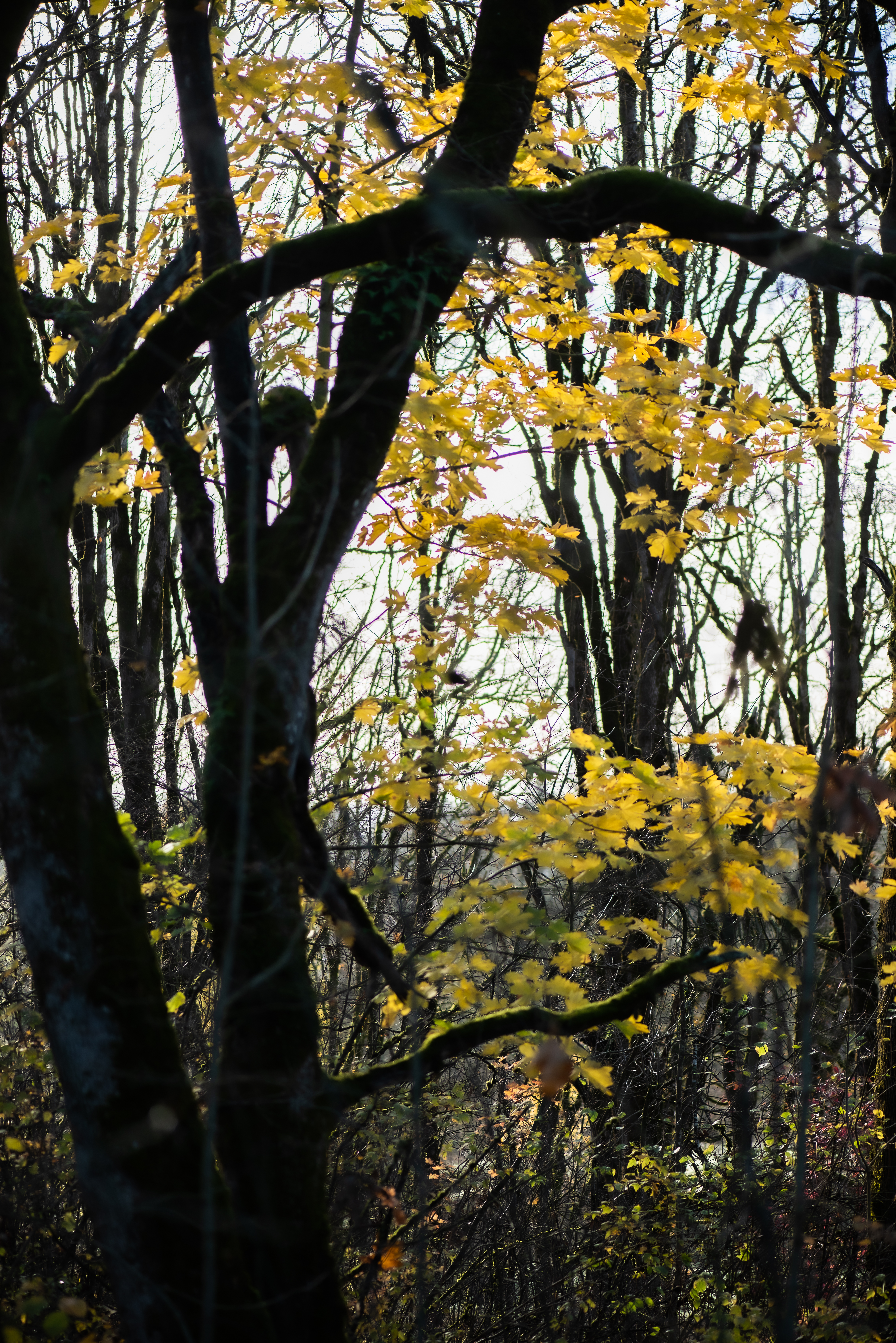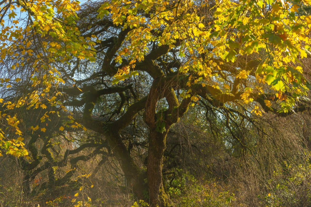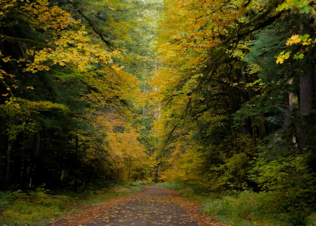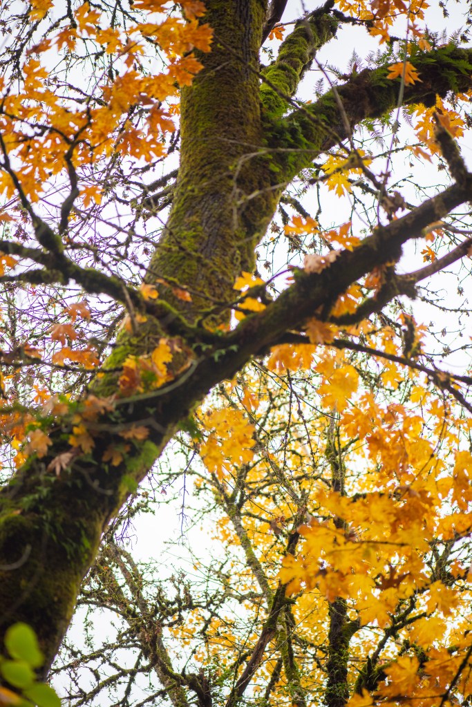 Fall has been amazing this year in NW Oregon. There are few leaves left even now, but it has lasted longer than I expected. I noticed a pattern in the colors from Sept to November. The first leaves to change that I noticed were from our blueberry bushes; reds. There were reds of the Vine Maple near Mt. Hood. Then the yellows and that is when I thought it was almost over; but mid November there was a deeper yellow/orange; and that was like an encore wave.